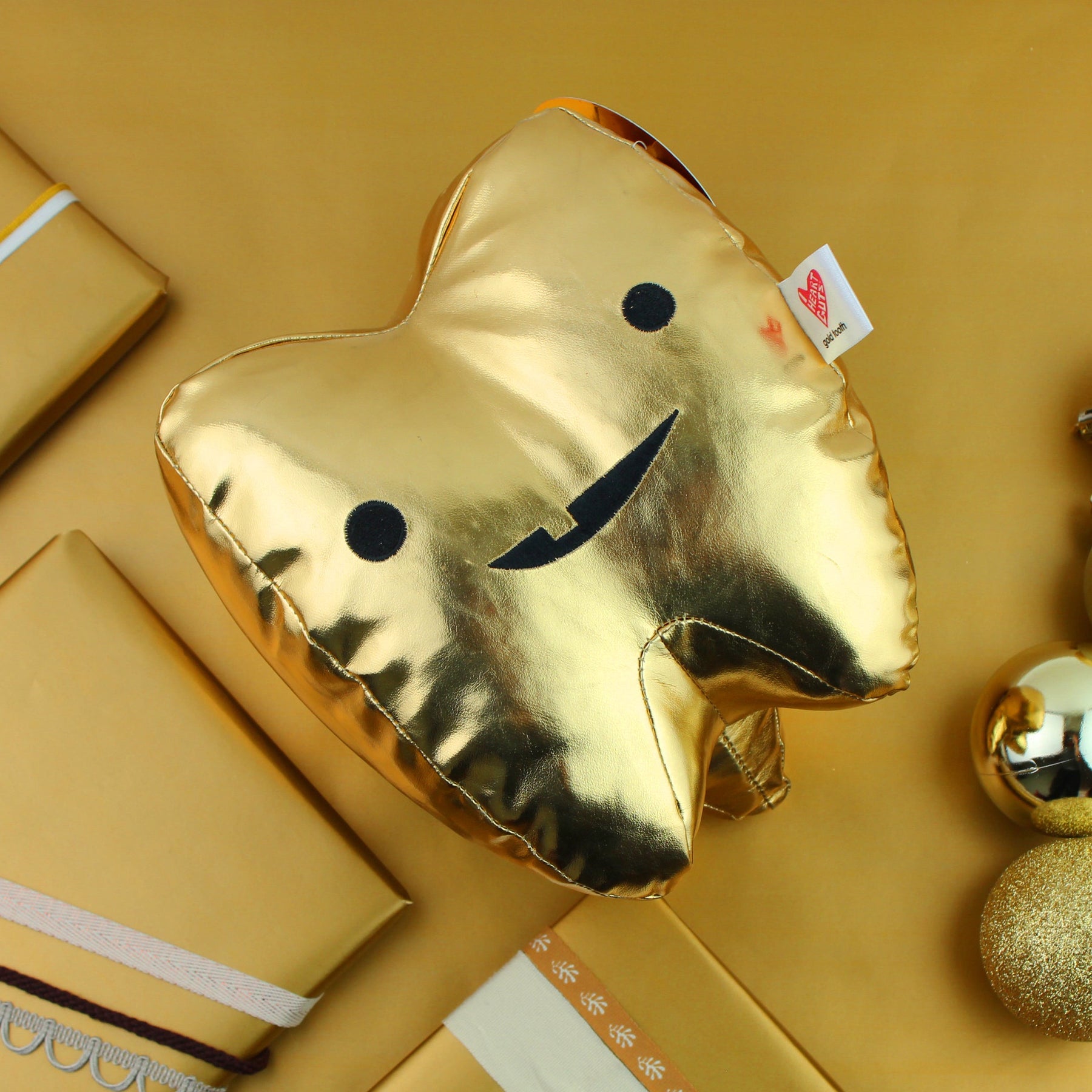 Crush it, quite literally, with this bling thing. Shiny vinyl gold tooth designer plush toy will put a smile on your face. This toothy grinning golden figure measures 7" x 7" x 5". Can you handle the tooth?